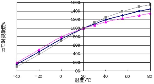 圖3 ES2-CO溫度靈敏度特性(-20℃~+70℃)