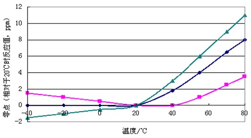圖4 ES2-CO溫度零點(diǎn)特性(-40℃~+80℃)