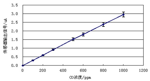 圖2 ES2-CO濃度線(xiàn)性特征(0-1000ppm CO)