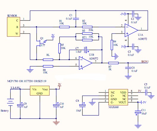 雙電極電化學(xué)傳感器應用電路Dual electrode electrochemical sensor application circuit三電極電化學(xué)傳感器應用電路(零偏壓)Three electrode electrochemical sensor application circuit(zero bias)電化學(xué)氧氣氣體傳感器(0~25%)Electrochemical oxygen gas sensor(0~25%)
